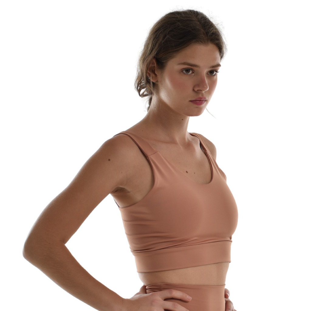 Ez a női melltartó top a kényelem és a letisztult design tökéletes ötvözete. Merevítő- és szivacs nélküli kialakítása természetes tartást ad, miközben pillekönnyű érzést nyújt egész nap. A dupla rétegű, környezetbarát anyag formatartó, légáteresztő és kellemes tapintású – ideális választás sporthoz és hétköznapi viselethez egyaránt.
