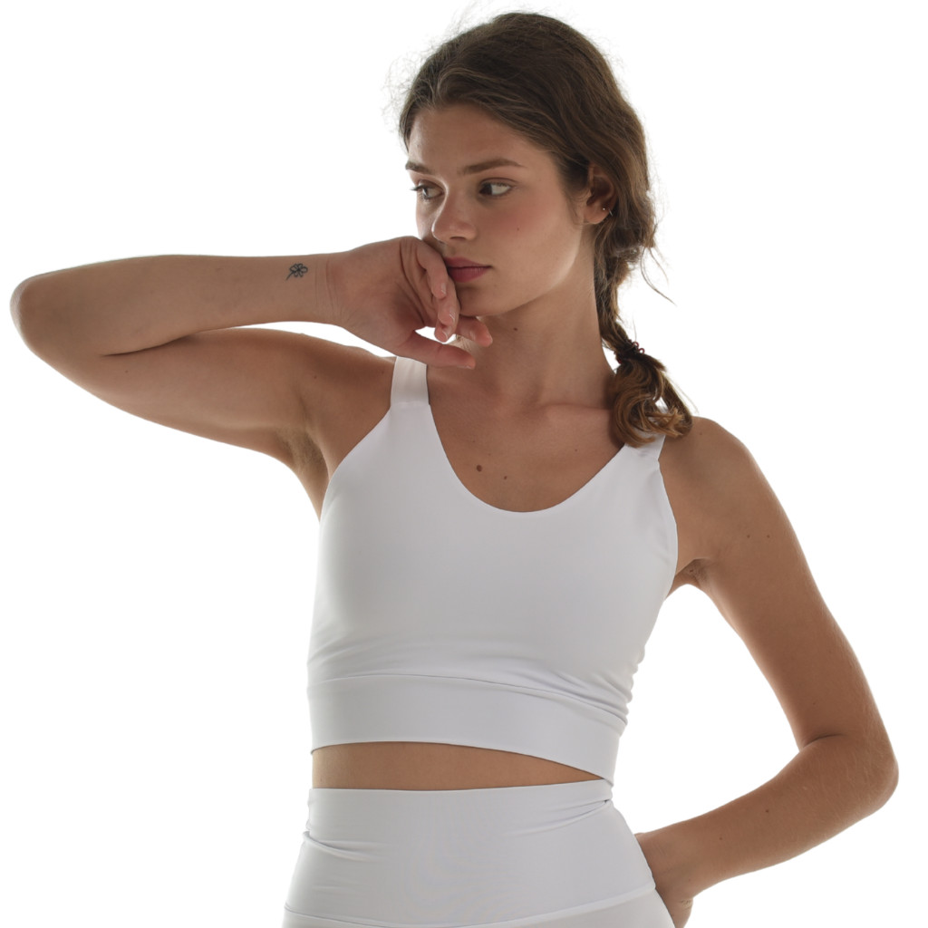 Ez a női melltartó top a kényelem és a letisztult design tökéletes ötvözete. Merevítő- és szivacs nélküli kialakítása természetes tartást ad, miközben pillekönnyű érzést nyújt egész nap. A dupla rétegű, környezetbarát anyag formatartó, légáteresztő és kellemes tapintású – ideális választás sporthoz és hétköznapi viselethez egyaránt.