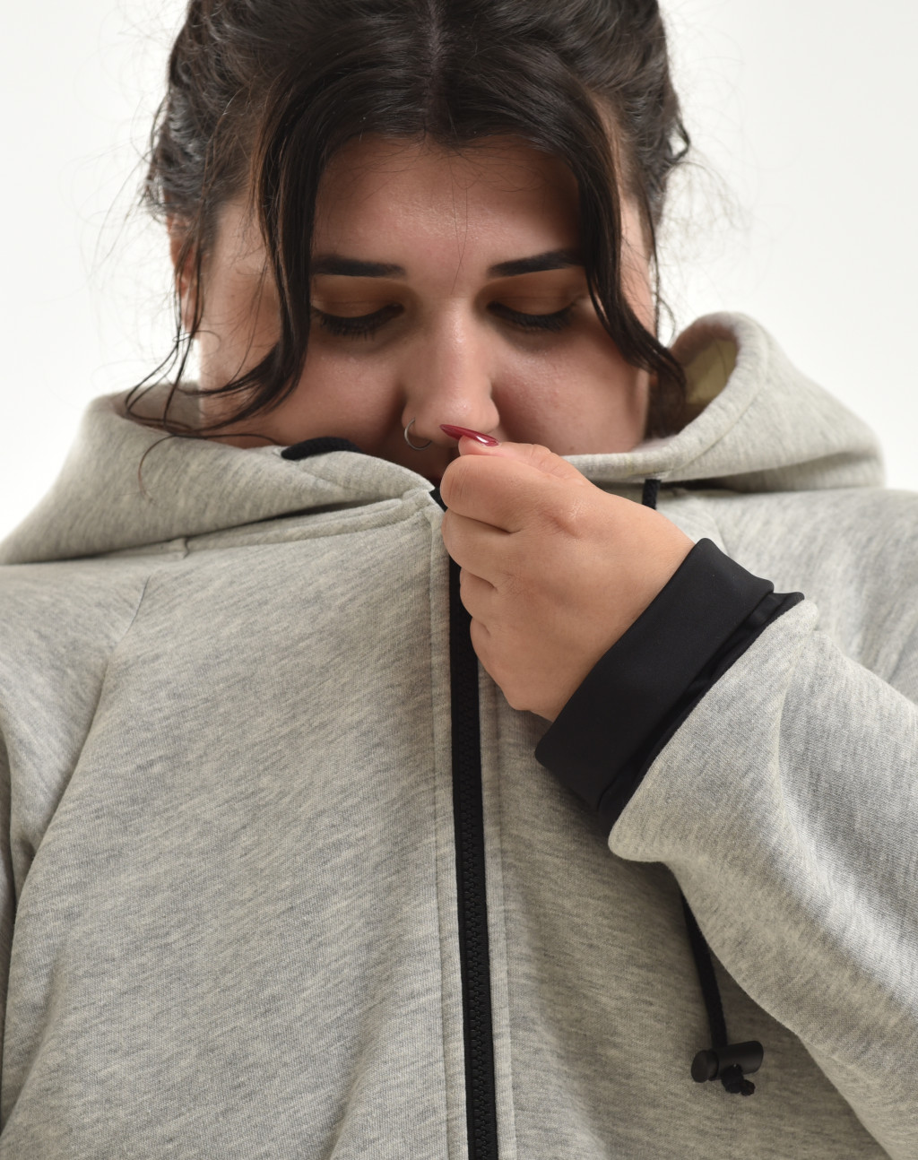 Ezt a melegítő felsőt kifejezetten a hidegebb napokra terveztük, hogy melegen tartson, miközben divatos megjelenést biztosít. A pulóver puha, vastag anyaga kellemes viseletet nyújt a hűvösebb időben, míg a fekete betétek újrahasznosított poliészterből készültek, kiemelve a fenntarthatóság iránti elkötelezettségünket. A cipzáras kialakítás és a kapucni zsinóros állítása nemcsak praktikus, hanem extra védelmet is biztosít a szél és a hideg ellen.