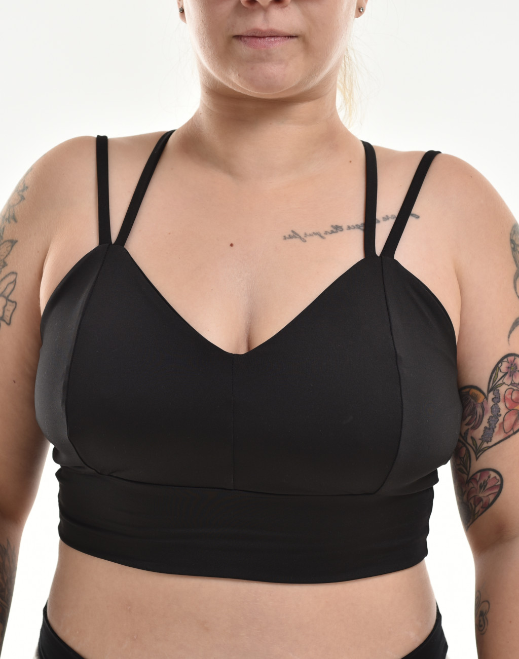 A dupla spagetti vállpántok modern megjelenést kölcsönöznek, és biztosítják a megfelelő tartást. A merevítő nélküli kialakítás és a rugalmas anyag garantálja a maximális kényelmet.