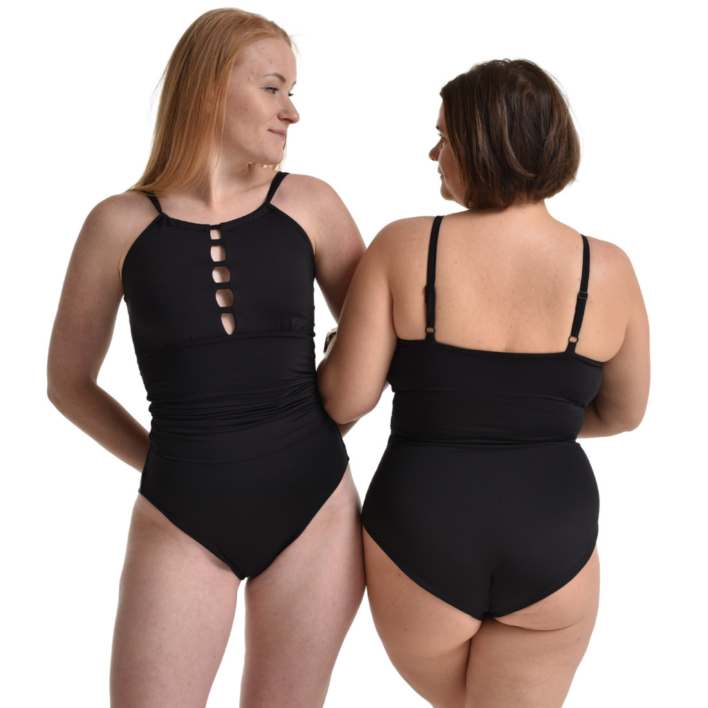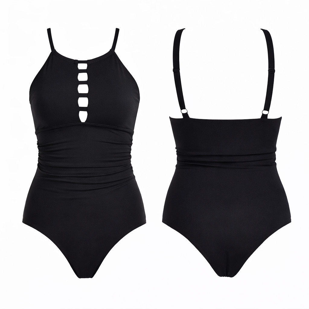 SZEXI ÉS NŐIES KIVÁGÁSOK: A fürdőruha dekoltázsrésze látványos kulcslyuk kivágással lett megtervezve, amely egyszerre elegáns és szexi. A magasított nyakrész modern megjelenést kölcsönöz, míg a állítható vállpántok biztosítják a tökéletes illeszkedést.