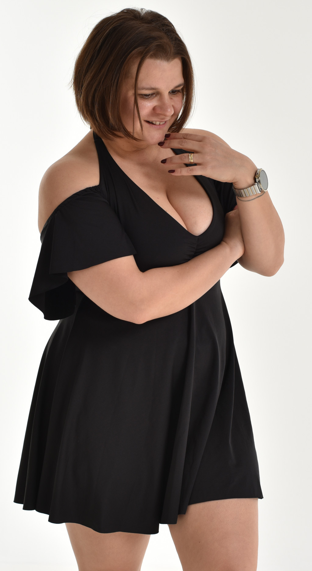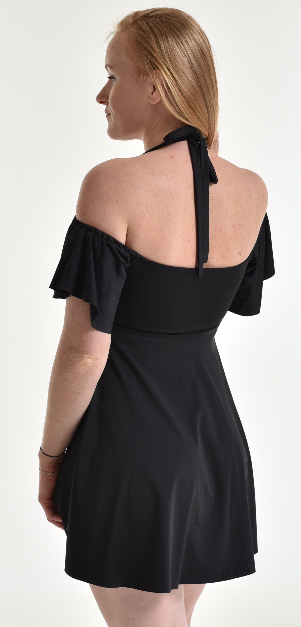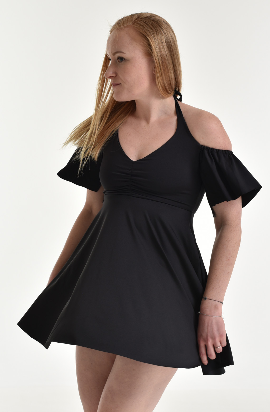 VARÁZSLATOSAN NŐIES FAZON: Az ruha ejtett vállmegoldása és a lágyan fodrozódó ujjrésze igazán romantikus és nőies hatást kelt, hiszen kiemeli a vállakat és finoman keretezi a dekoltázst.