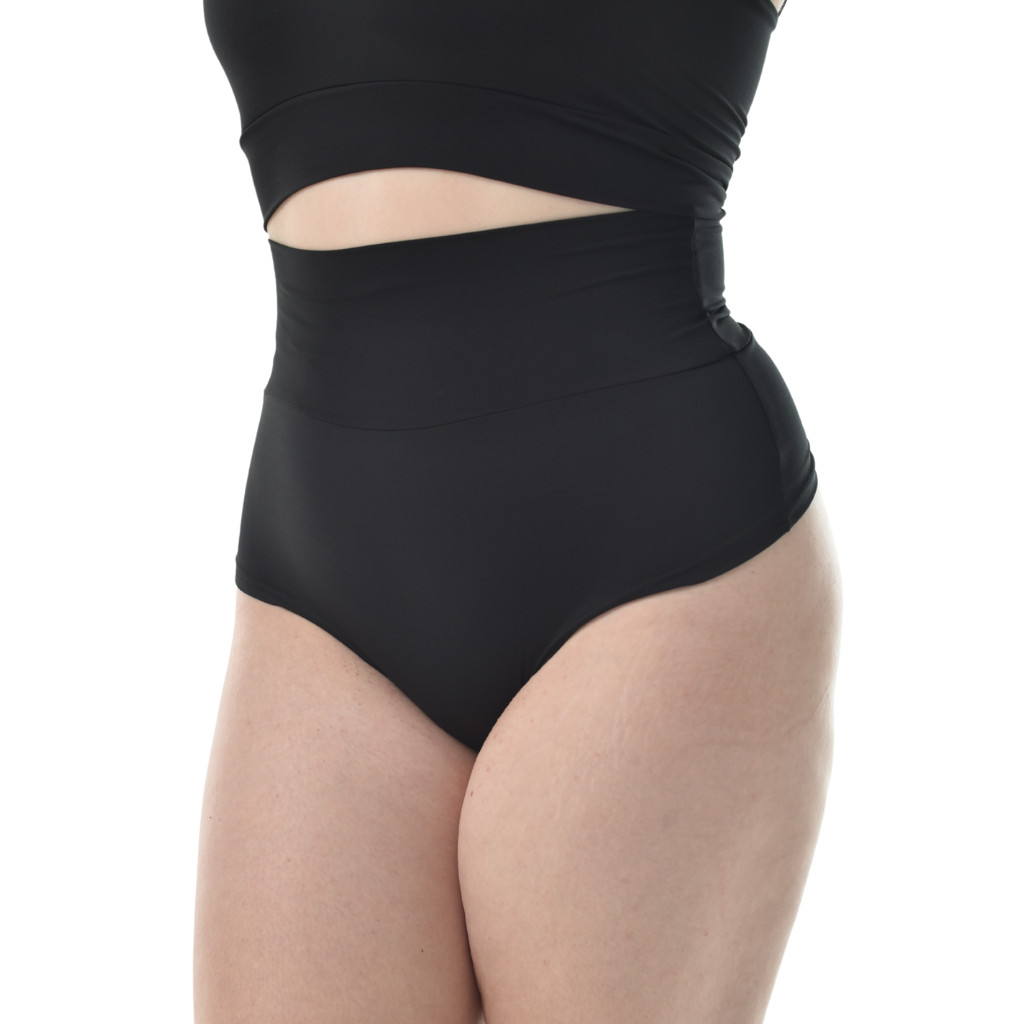 A különleges magas derekú szabása stabil tartást biztosít, miközben optikailag formálja a derekat.